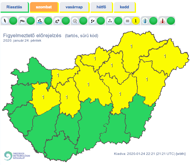 Szombaton többnyire erősen felhős vagy borult, párás, néhol ködös idő lesz, főként a magasabb hegyekben, esetleg a Dél-Alföldön lesz napsütés.
