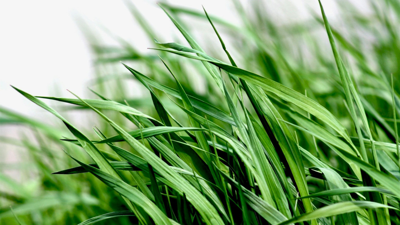 A tó déli medrének kiszáradt aljzatát sűrű, zöld szőnyegként fedi egy különleges, só- és szárazságtűrő növény, a hegyes bajuszpázsit növekvő állománya.