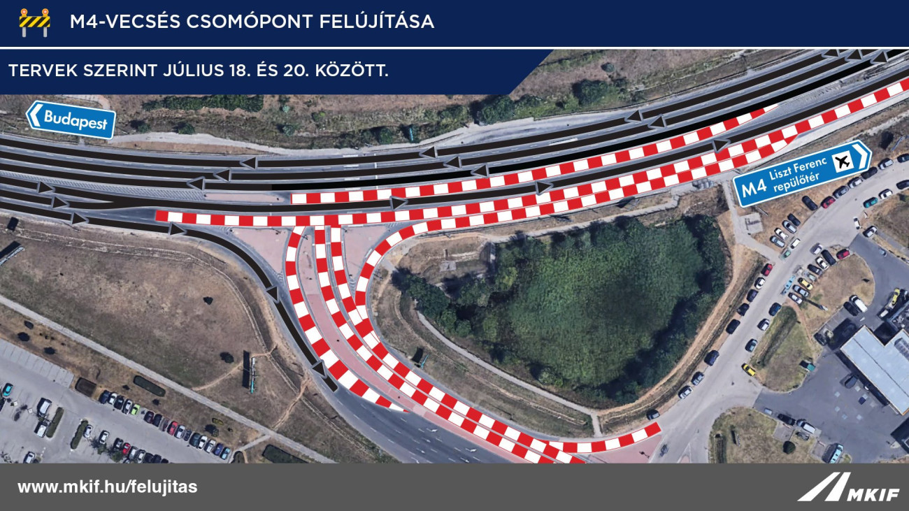 - Július 18-20. között: Budapest felé két sávon, míg a repülőtér irányába 1 sávon haladhat majd a forgalom.