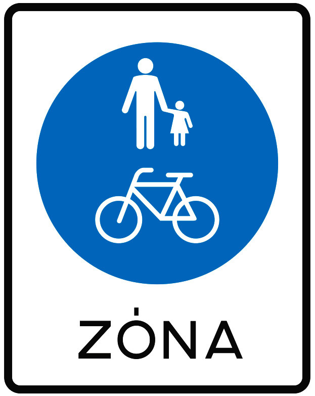 A tábla jelentése: „Gyalogos és kerékpáros övezet (zóna)”, és olyan terület kezdetét jelzi, amelynek útjai a gyalogosok és a kerékpárosok közlekedésére szolgálnak, egyéb jármű közlekedése az övezetben tilos – írja a KRESZ.