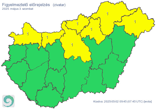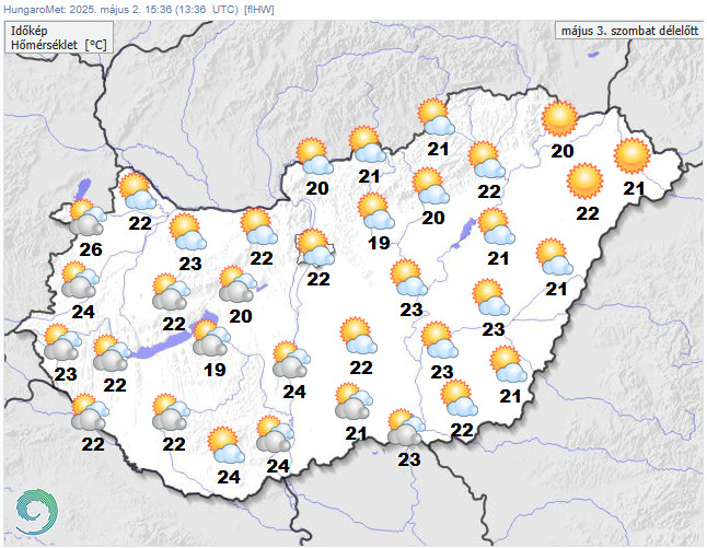 Főként az Észak-Dunántúlon és az Északi-középhegység tágabb térségében már előfordulhat egy-egy zápor, zivatar, de kialakulásukra inkább az esti óráktól számíthatunk nagyobb számban. A déli, délnyugati szél nagy területen lesz élénk, a délnyugati megyékben helyenként meg is erősödik. Zivatarok környezetében viharos széllökés, villámlás és jégeső is előfordulhat.
