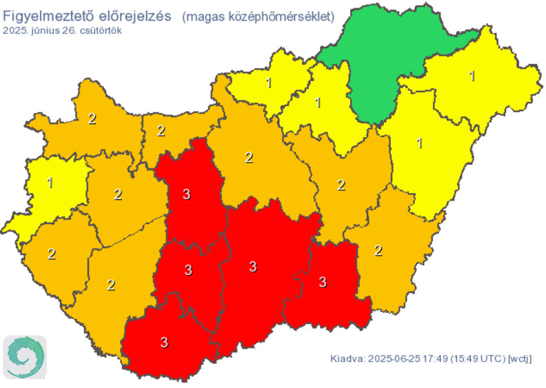 Csütörtökön a nap első felében túlnyomóan derült idő várható, majd északnyugat-nyugat felől fátyolfelhők érkeznek és gomolyok képződnek, de ezekből napközben nem kell csapadékra számítani. A legmelegebb az Alföld déli régiójában lesz, 38-39 fokot is mutathatnak a hőmérők, és biztosan meg fog dőlni az erre a napra vonatkozó országos melegrekord, ami 36,1 fok - derül ki a HungaroMet videójából.