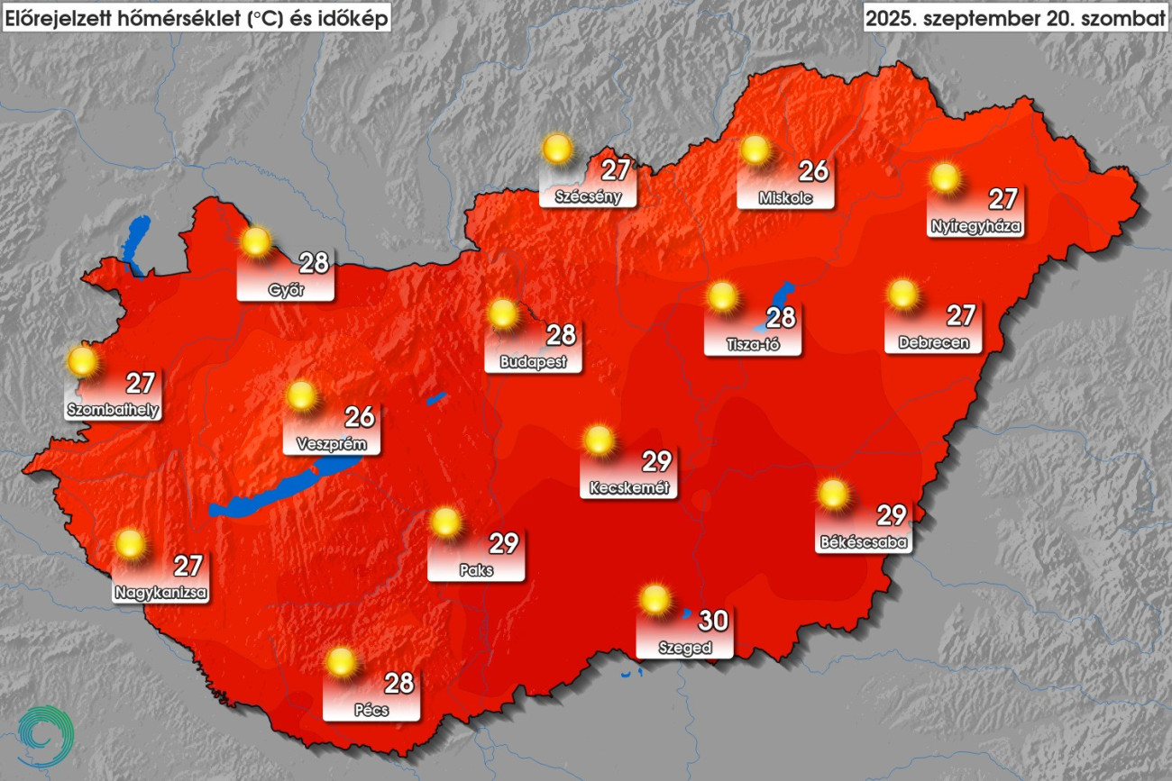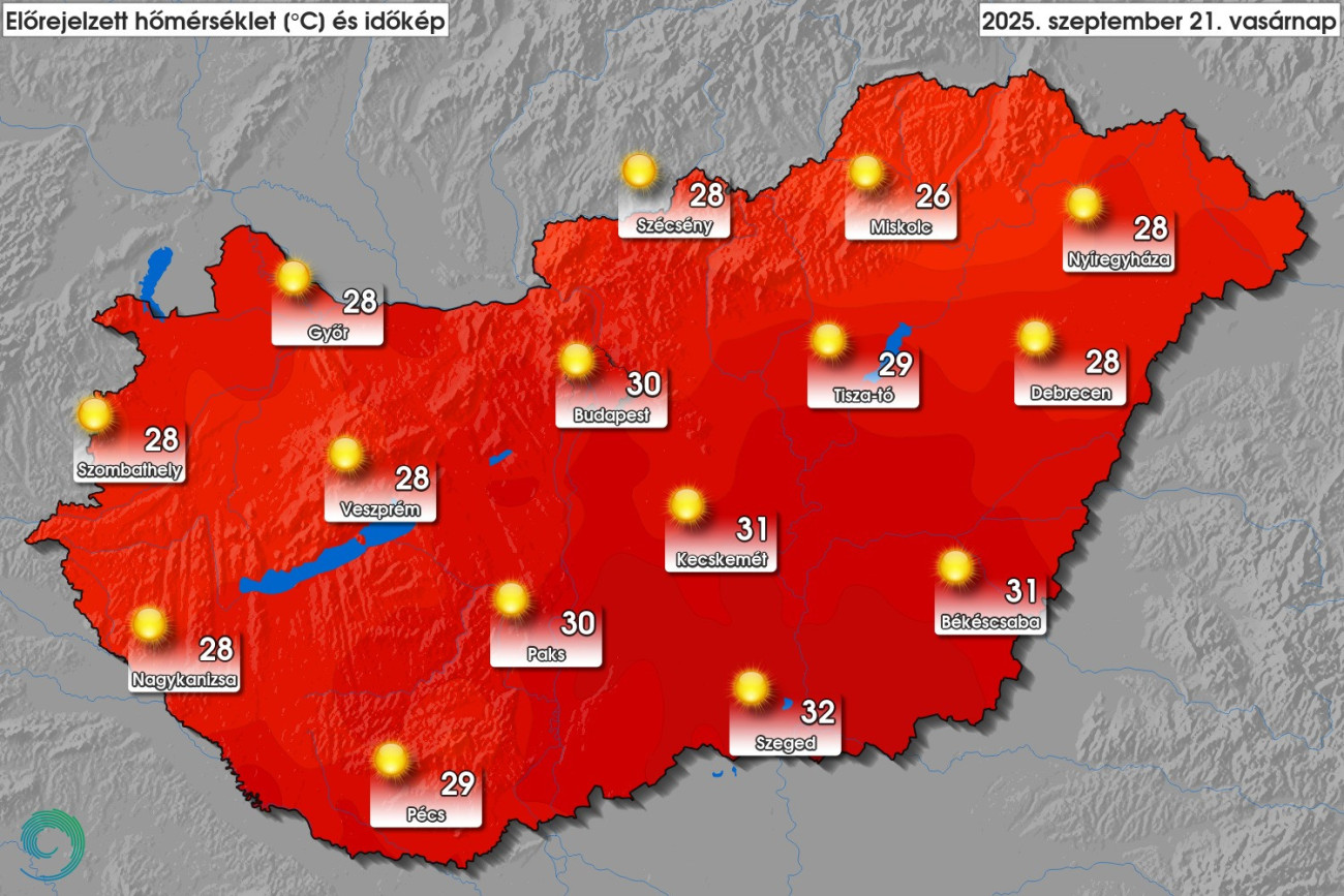 Mérsékelt, az Észak-Dunántúlon élénk, Sopron körül erős déli, délkeleti széllel pedig egyre melegebb levegő érkezik fölénk, így szombaton 25 és 30, míg vasárnap 26 és 32 fok közötti csúcshőmérsékletre számíthatunk, de az éjszakák frissek lesznek.