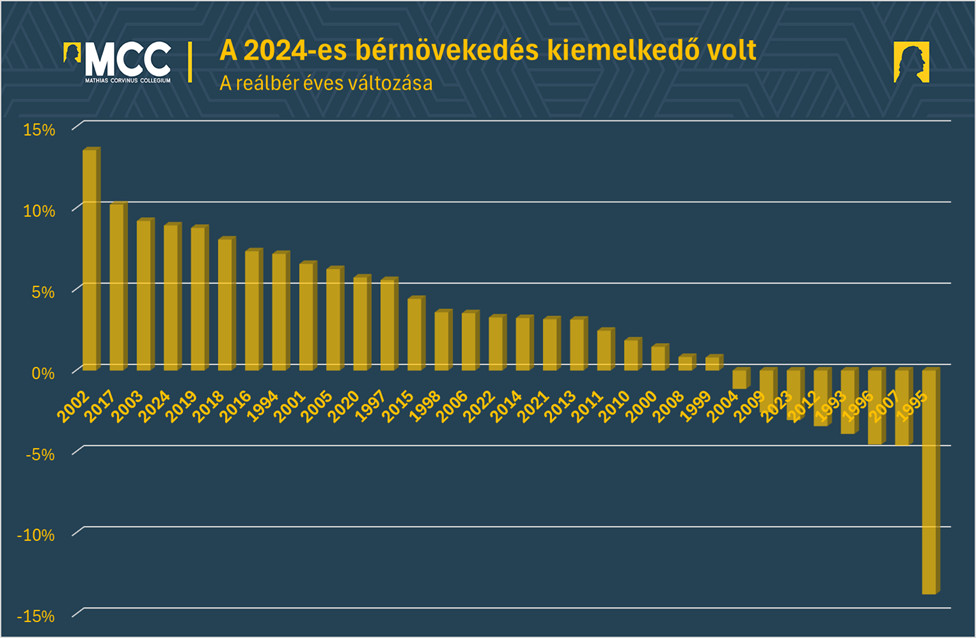 2024 ugyan lecsúszott a dobogóról, de csak egy hajszállal. A keresetek tavalyi 8,9 százalékos vásárlóerő-növekedése a negyedik legjobb a rendszerváltás utáni gazdaságtörténet adatai szerint.