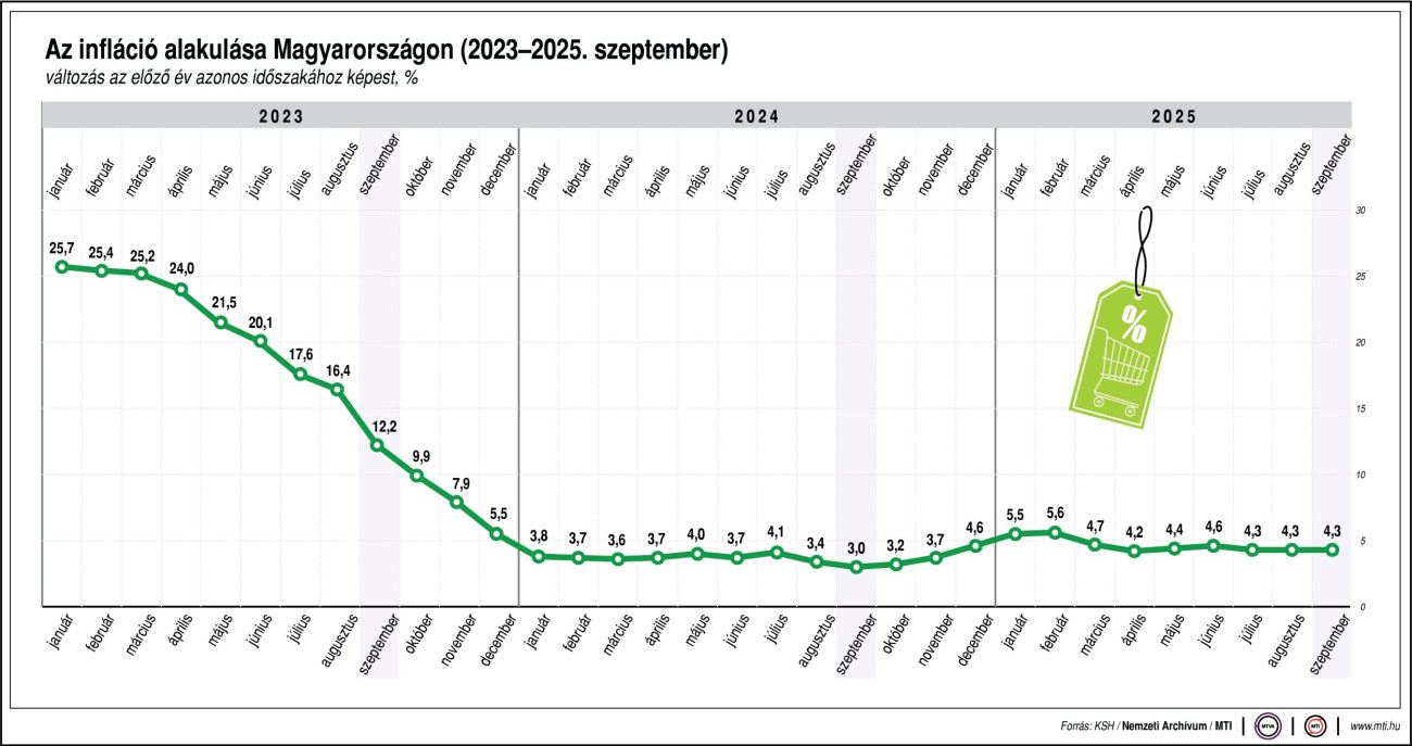 2025. augusztushoz viszonyítva a fogyasztói árak átlagosan nem változtak.