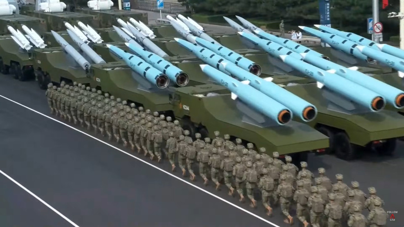 Ezután megkezdődött a katonai díszszemle, amelyen bemutatták Kína legújabb haditechnikai eszközeit.