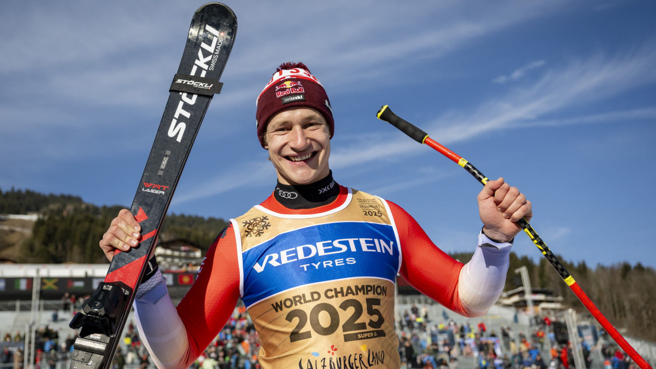 (A nyitóképen: Az aranyérmes svájci Marco Odermatt ünnepel a férfiak szuperóriás-műlesikló versenyének eredményhirdetésén a Saalbachban zajló alpesisí-világbajnokságon 2025. február 7-én.)