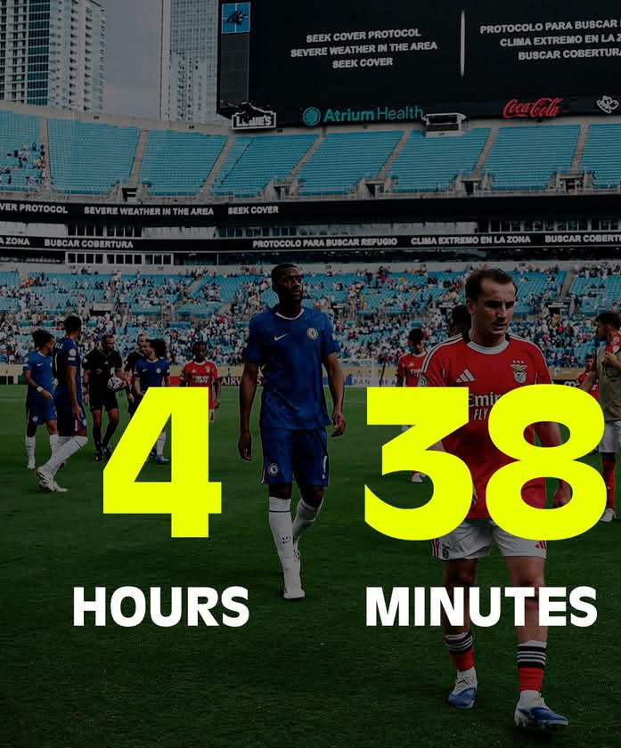 Ami a szigorúan vett futballtényeket illeti, az észak-kaliforniai Charlotte-ban a Chelsea a második félidőben Reece James az oldalvonal közeléből, a bal oldalról lőtt szabadrúgás-góljával vezetést szerzett. Győztesnek tűnt, de Slavko Vincic játékvezető a 86. percben, a közelgő vihar miatt, megszakította a találkozót. A közel kétórás kényszerszünet után, az újrakezdés után kilenc perccel, a meccs 95. percében, Ángel Di María büntetőből kiegyenlített. A 2x15 percből még csak kettő telt aztán el, amikor a portugálok tízfősre fogyatkoztak, Gianluca Prestianni második sárga lapja miatt. A folytatásban már a Chelsea volt az úr, Christopher Nkunku (108.), Pedro Neto (114.) és Kiernan Dewsbury-Hall (117.), végül 4–1-re nyert. A mérkőzés végül 4 órán és 38 percen keresztül tartott.