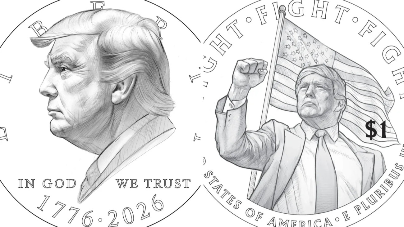 A minisztérium megerősítette, hogy az elnököt ábrázoló egydolláros érme terve elkészült, és az amerikai kincstárnoki hivatal – Brandon Beach pénztárnok vezetésével – már meg is osztott néhány látványtervet. Az X-re kiposztolt képek szerint az érme előlapján Donald Trump oldalnézeti portréja látható a hagyományos mottókkal (Szabadság, Hiszünk Istenben) valamint a dátummal: 1776–2026. A hátoldalon pedig egy erősen politikai töltetű, mára ikonikussá vált jelenet lenne látható: Donald Trump felemelt ököllel, közvetlenül az ellene történt tavalyi merényletkísérlet után, körülötte pedig a felirat: „Fight, Fight, Fight” (magyarul: harcolj, harcolj harcolj). Donald Trump sebesülten ezt kiáltotta a tömeg felé, miközben a testőrök megpróbálták elrángatni, és biztonságos helyre vinni.